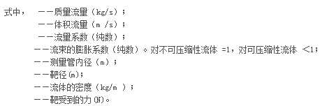 靶板受力經力轉換器轉變成電流信號(4~20)mA或氣壓信號(20~100kPa)輸出,輸出信號與流量的關系可根據上式確定。