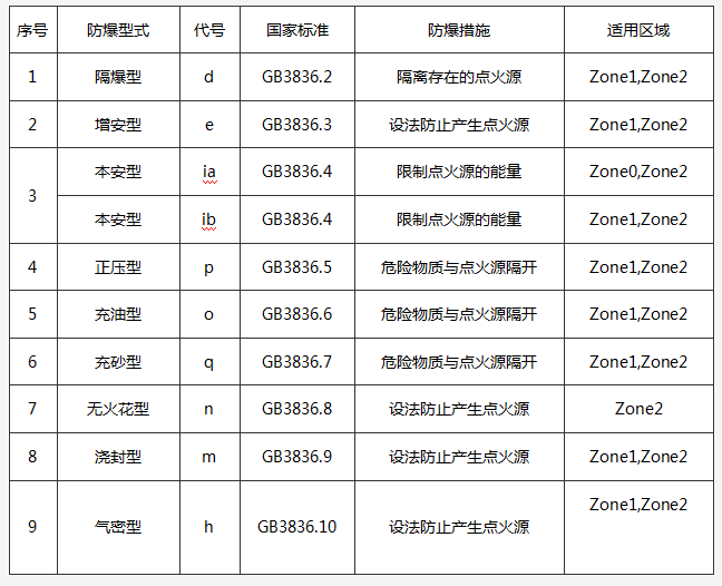 根據可能引爆的最小火花能量,我國和歐洲及世界上大部分國家和地區將爆炸性氣體分為四個危險等級,如下表: