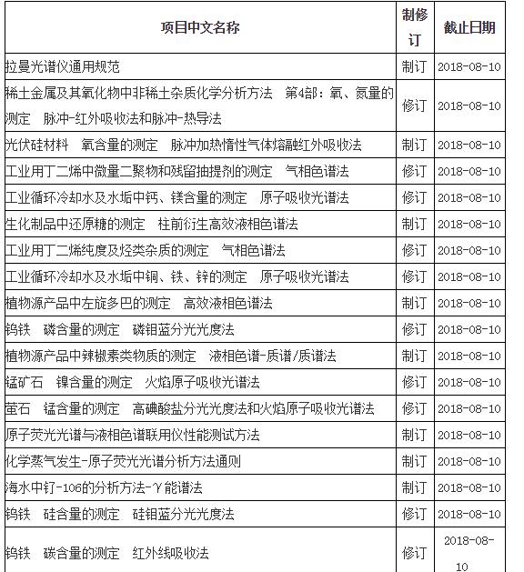 根據(jù)通知內(nèi)容顯示,在685項計劃中,涉及多項儀器分析檢測標準,包括拉曼光譜法、近紅外光譜法、原子吸收光譜法、電感耦合等離子體、原子發(fā)射光譜法、氣相色譜法、高效液相色譜法等,多欽儀表整理如下: